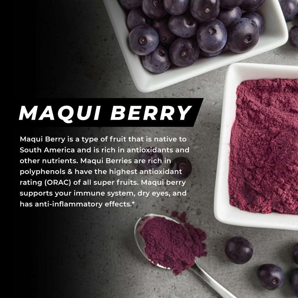Maqui berry is a type of fruit that is native to South America and is rich in antioxidants and other nutrients. Maqui Berries are rich in polyphenols & have the highest antioxidant rating (ORAC) of all super fruits. Maqui berries are rich in antioxidants and other nutrients that can help support overall health and well-being.